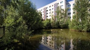 Unmittelbar am Stadtrand befindet sich die Hans- Grade-Straße. Sie haben in nördlicher Richtung einen freien Blick in die hüglige Bördelandschaft. Unsere Häuser hier umrahmen den Birkenhof. Dieser beeindruckt durch eine gelungene Gestaltung der Außenanlagen, in dessen Mittelpunkt eine Teichanlage steht. Das attraktive Umfeld des Birkenhofes wurde mehrfach prämiert und gilt städtebaulich als zukunftsweisend.